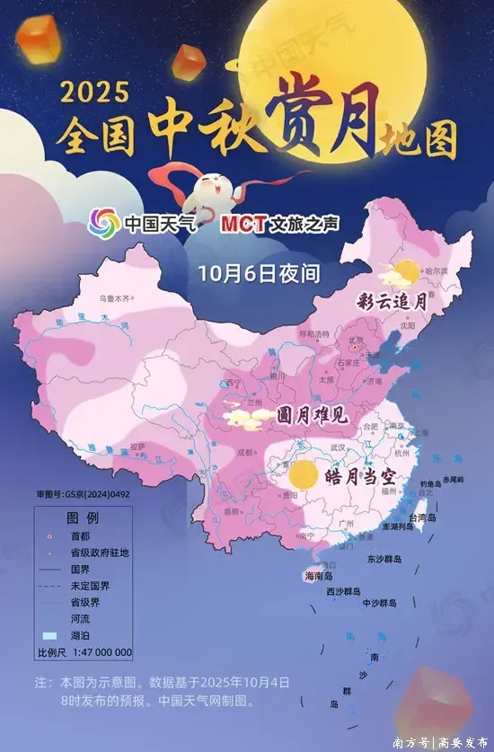 北京、天津、河北、河南、山东、陕西、云南等地云层较厚,或有雨水来扰,可能无缘欣赏今年的中秋圆月。